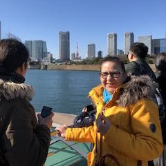 To go to Odaiba, we took a water bus. During the one hour drive, we enjoyed viewing the city from Sumida River and Tokyo Bay. (It was a wonderful weather to take a ride too!)