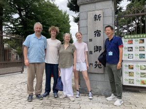 we guided a family from Belgium in Asakusa, Fukagawa, Shinjuku, Harajuku and Shibuya areas under a cloudy but muggy weather.