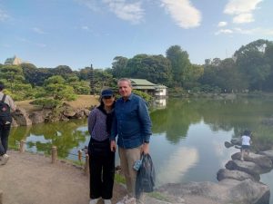 A couple who visited Japan for the first time from France enjoyed historical Japanese gardens and foods