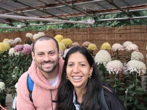 A young couple from the Netherlands enjoyed Japanese tea ceremony with tatami room and Sensouji and Fukagawa Fudoson temples. They took many photos of fish and bird at Kiyosumi park.