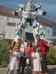 A Malaysian family of 6 persons including 5 years children, enjoyed Toyosu fish market, big Gundam transformation, halal